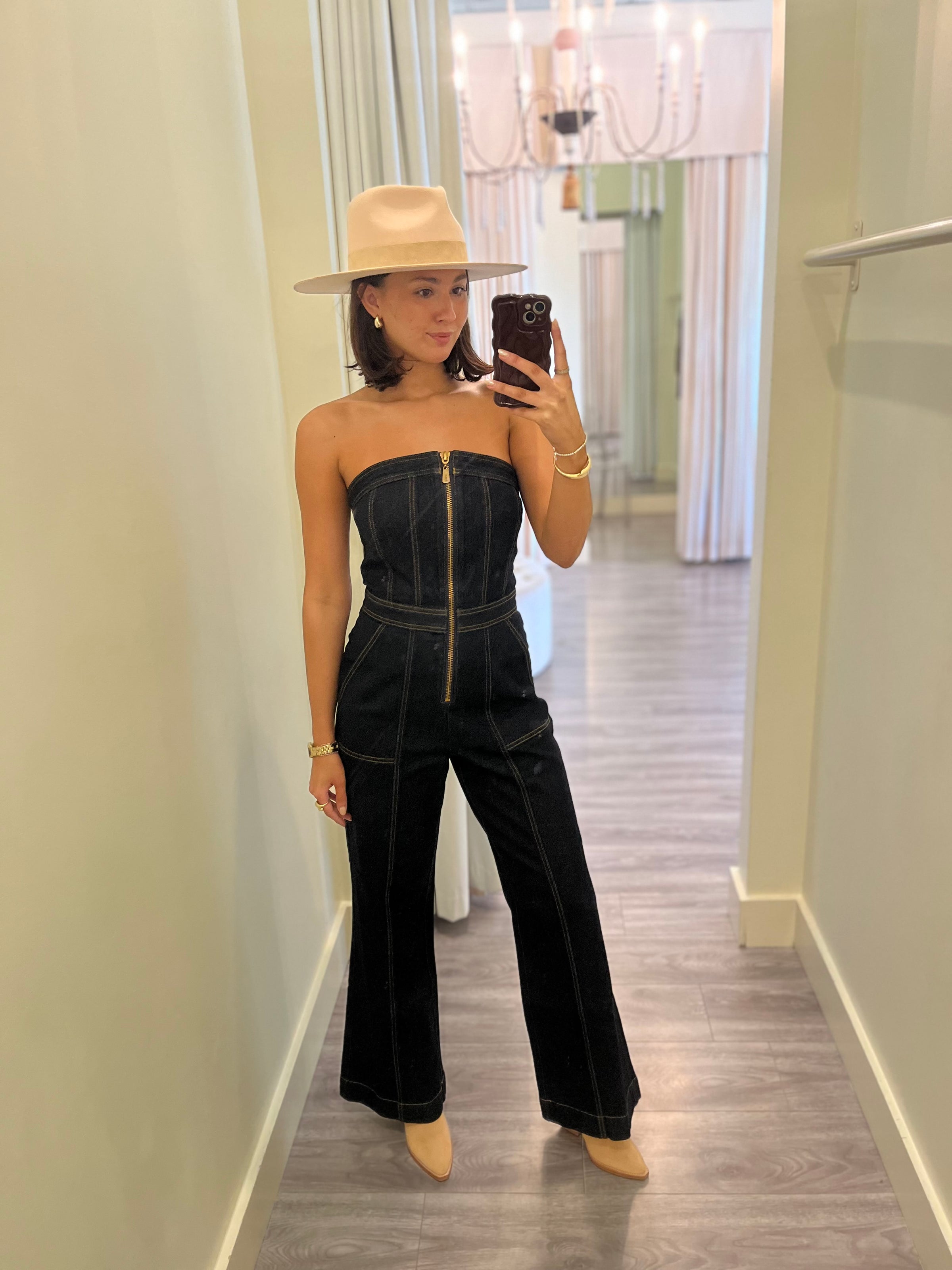 KI70 Dark Denim Strapless Jumpsuit