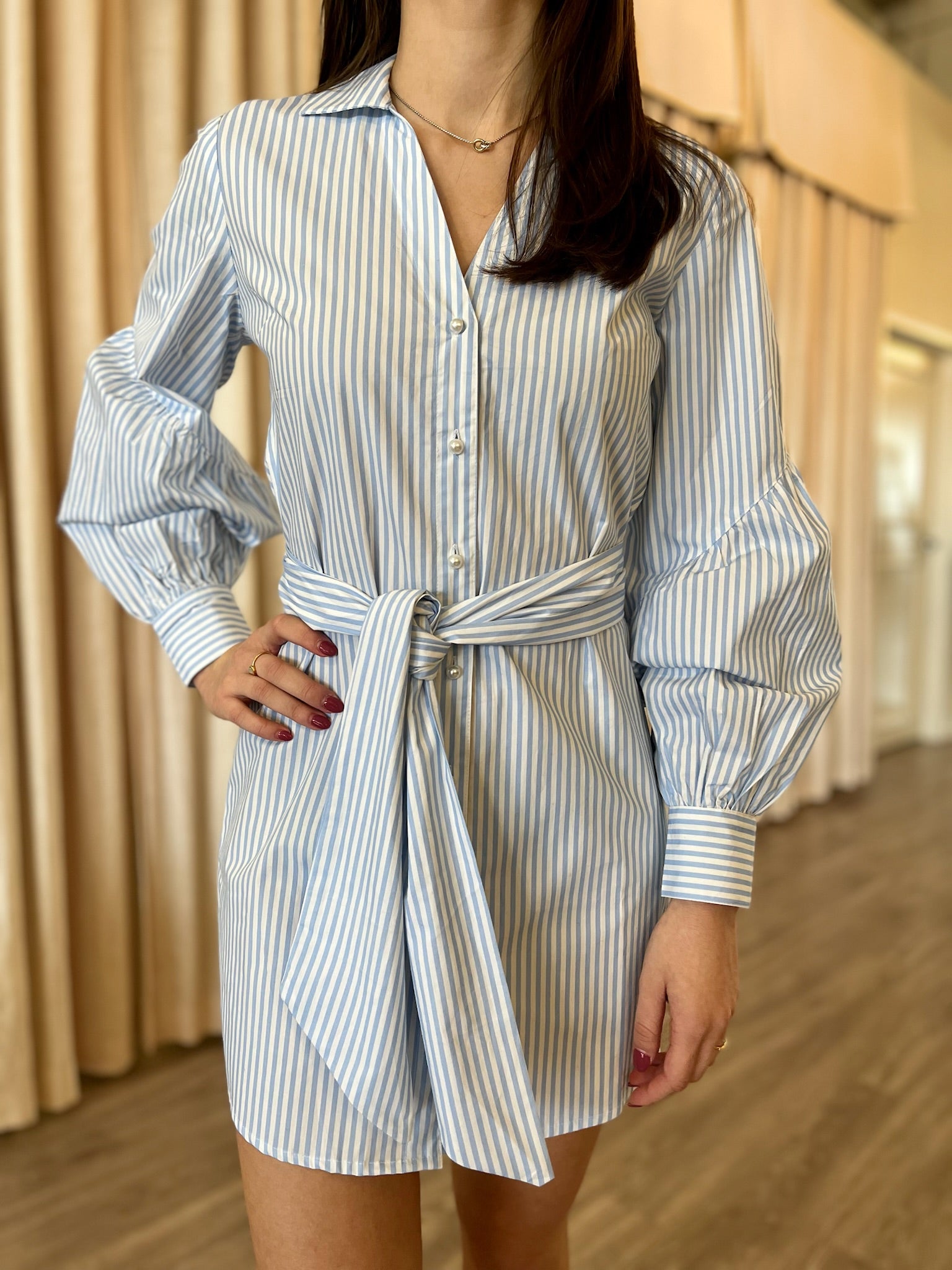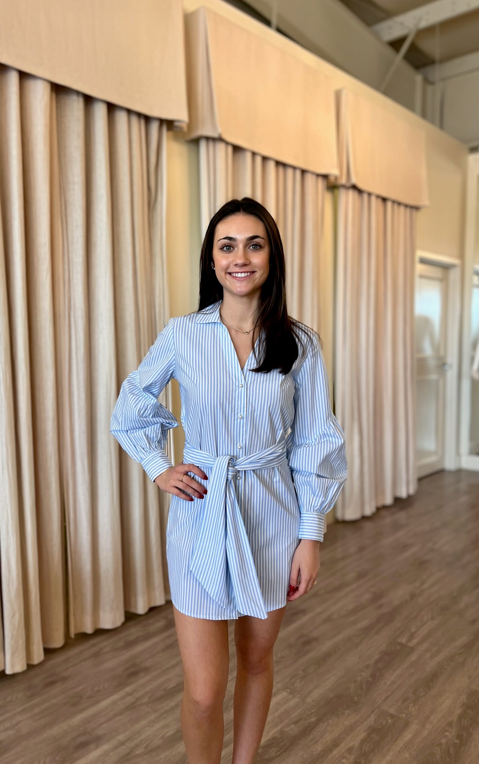 ALp125 Blue/White Stripe Button Down Dress w/ Pearl Buttons
