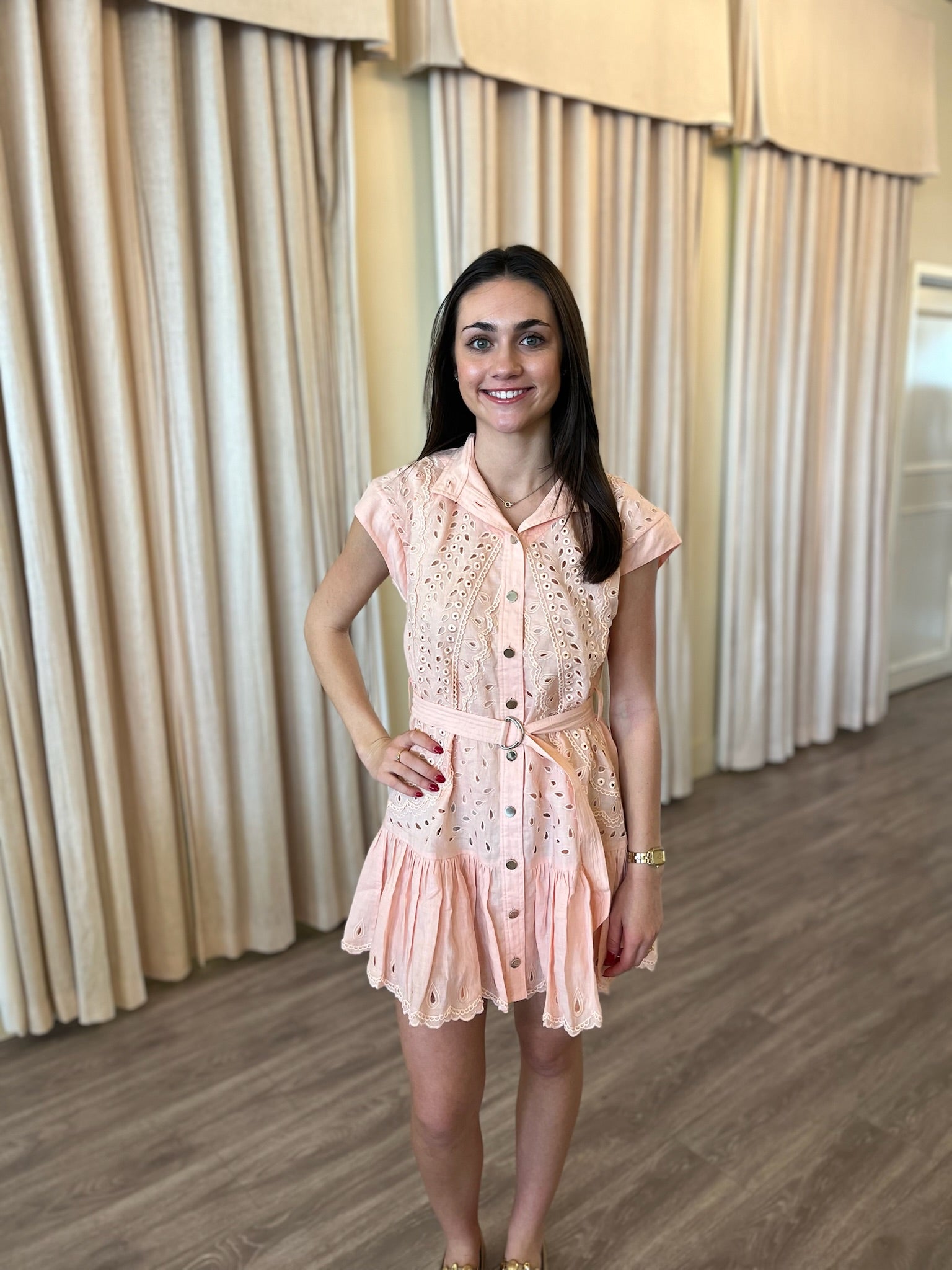 KG4048 Peach Embroidered Mini Dress