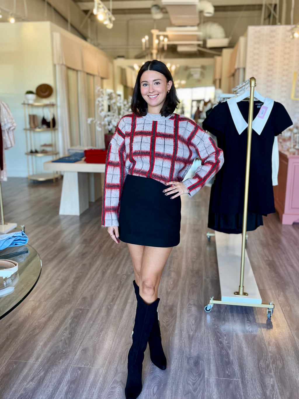 MM2660 Grey Ballon Sleeve Sweater Mini Dress