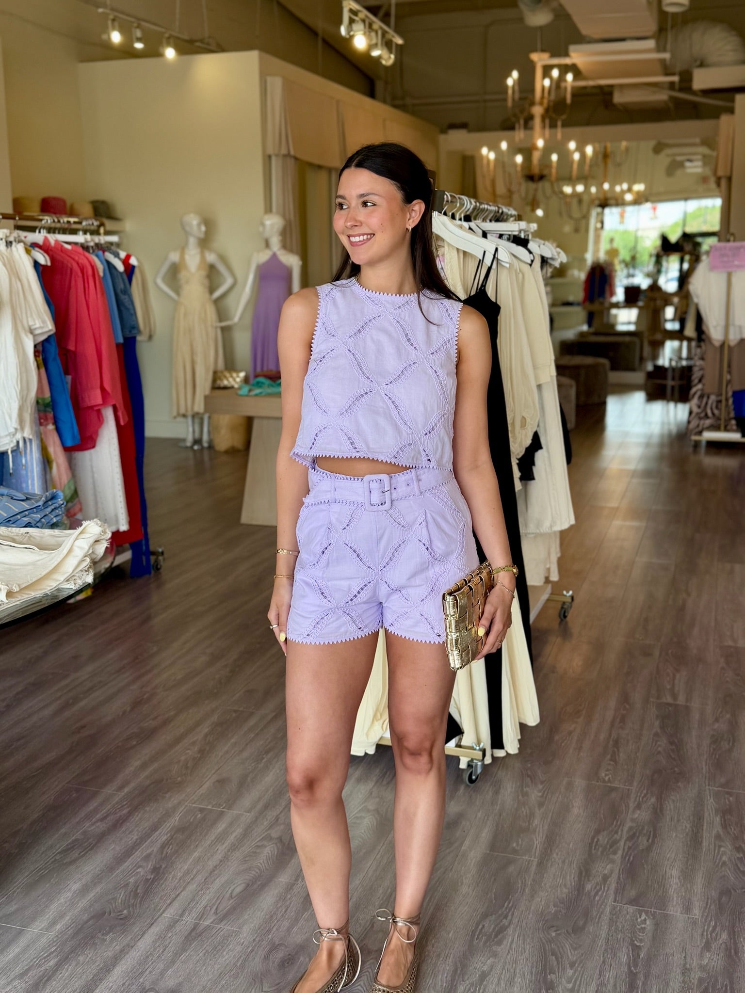 AL050 Lavendar Eyelet Slvless Top