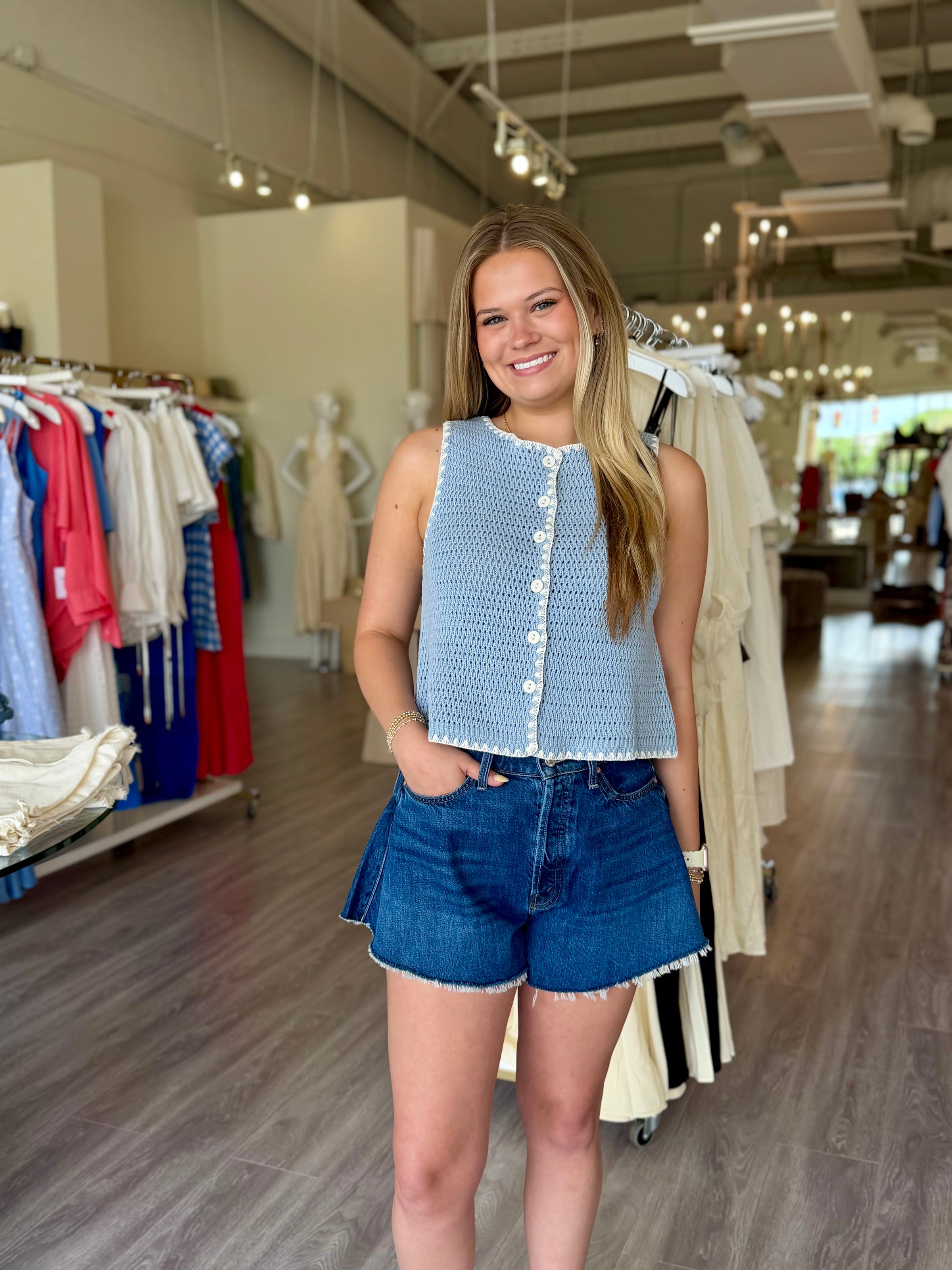 BB11149 Blue Knit Sweater Vest w/ White Trim