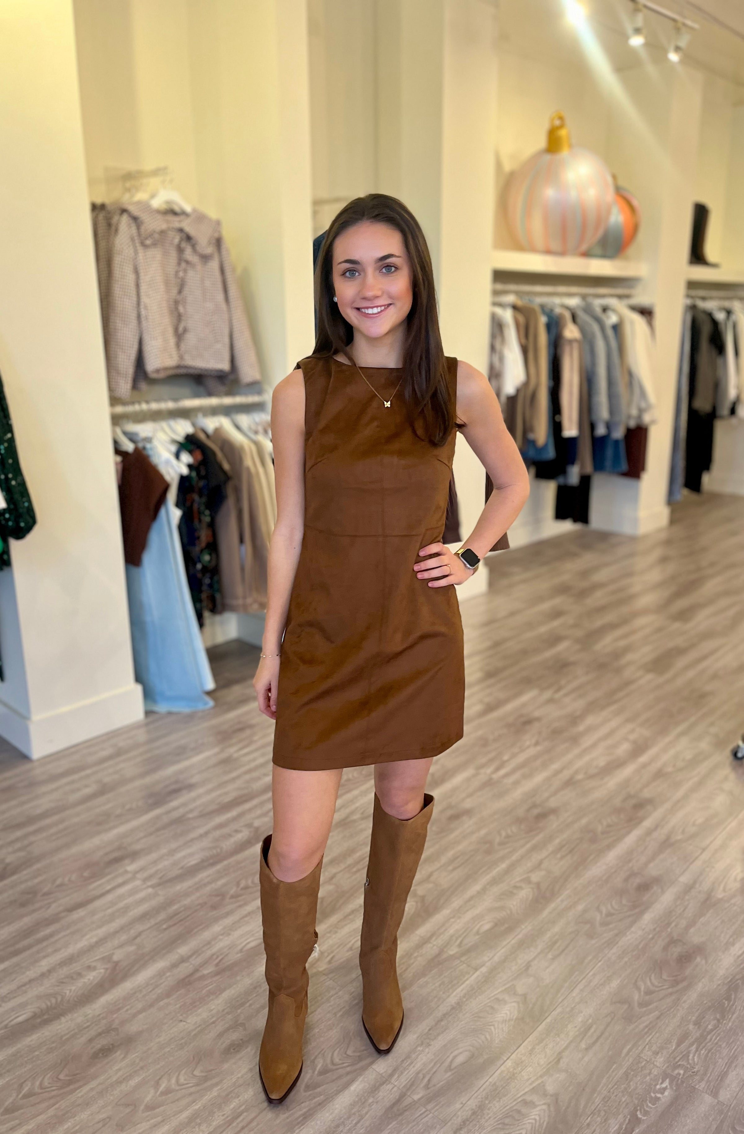 HA2439 Brown Suede Mini Shift Dress