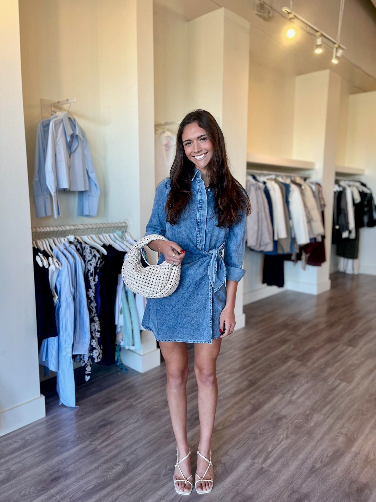 HL84A Denim Longslv Wrap Dress
