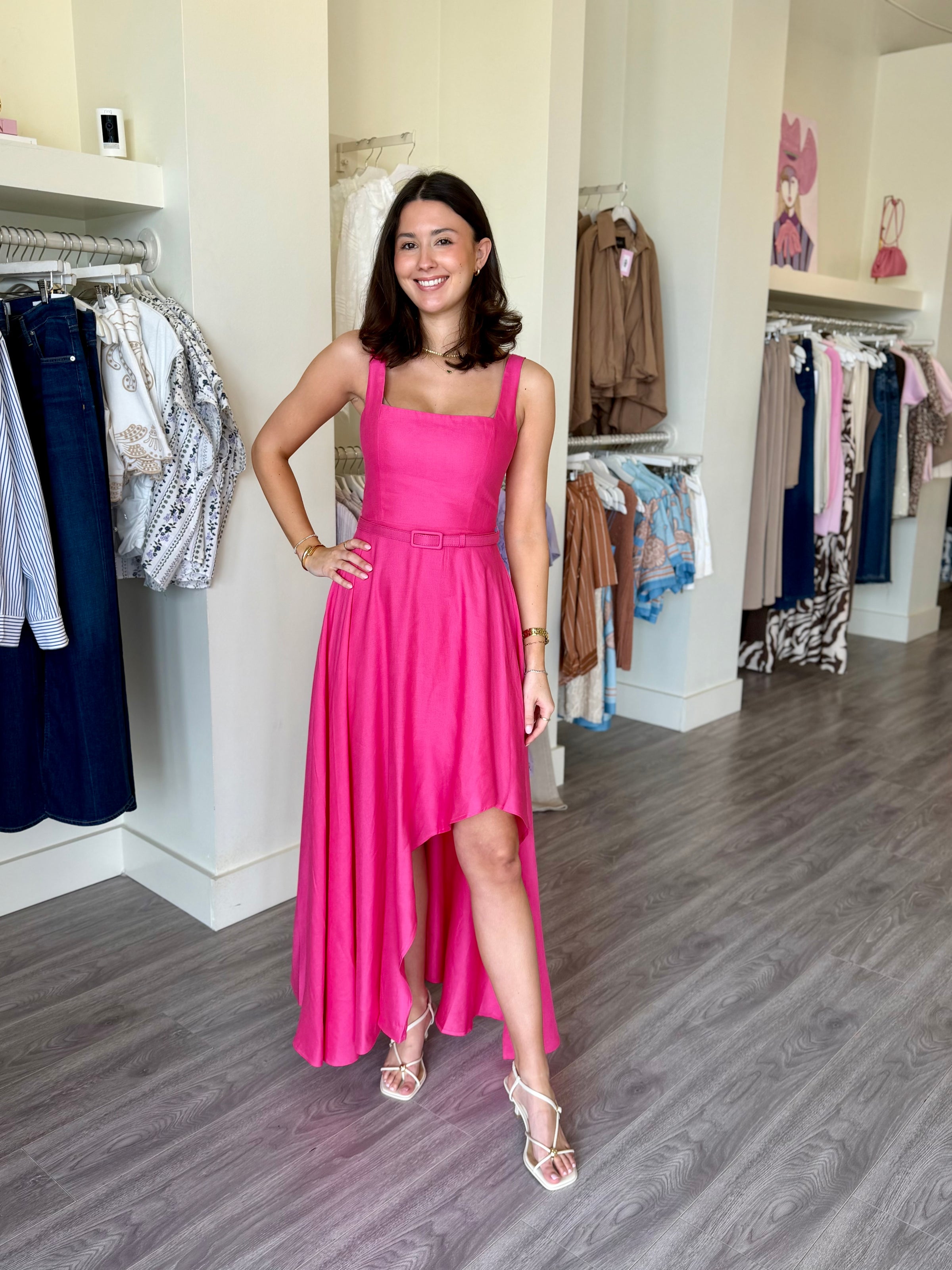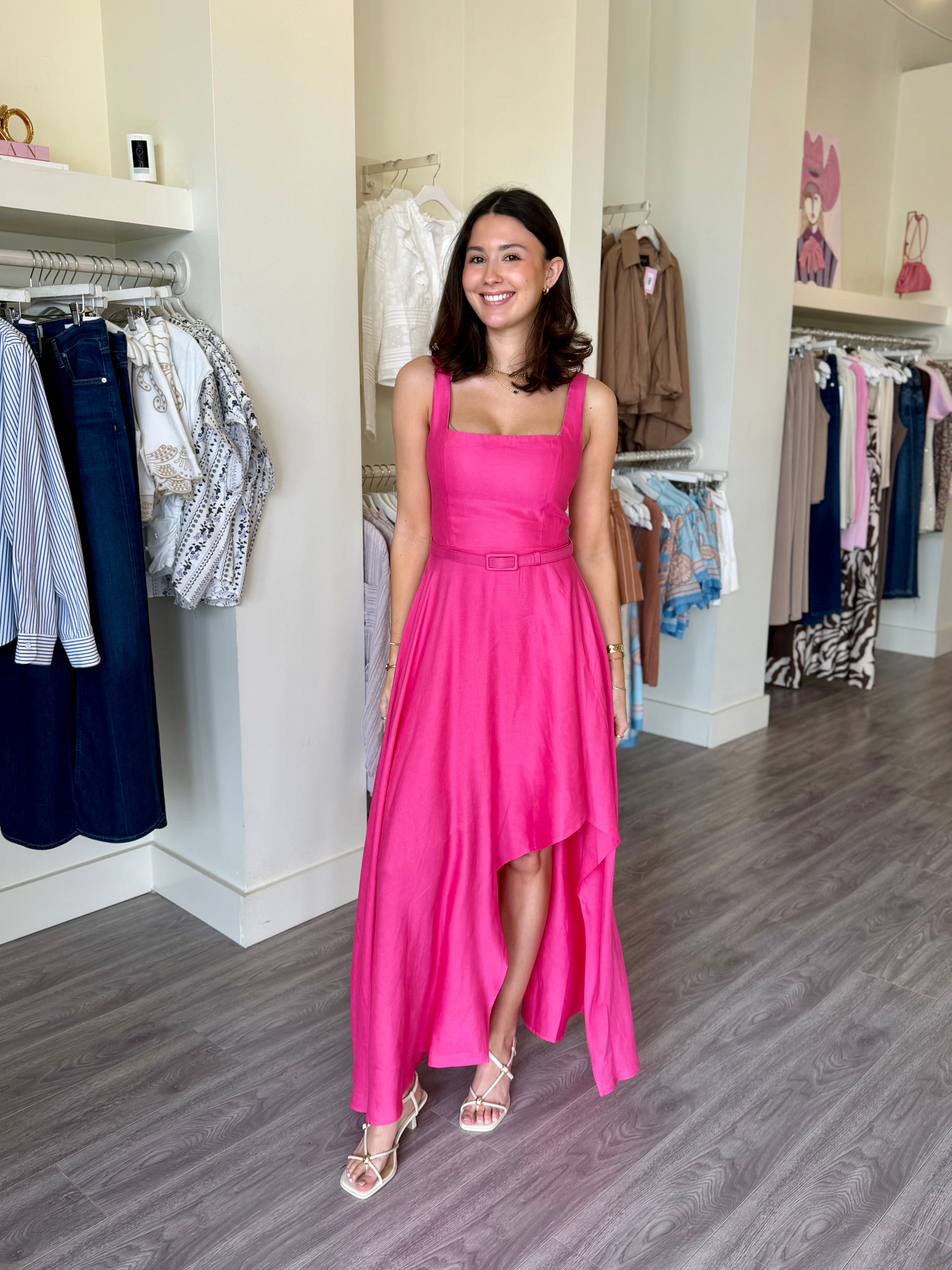 JS71 Hot Pink Button-Down Mini Dress w/ belt detail