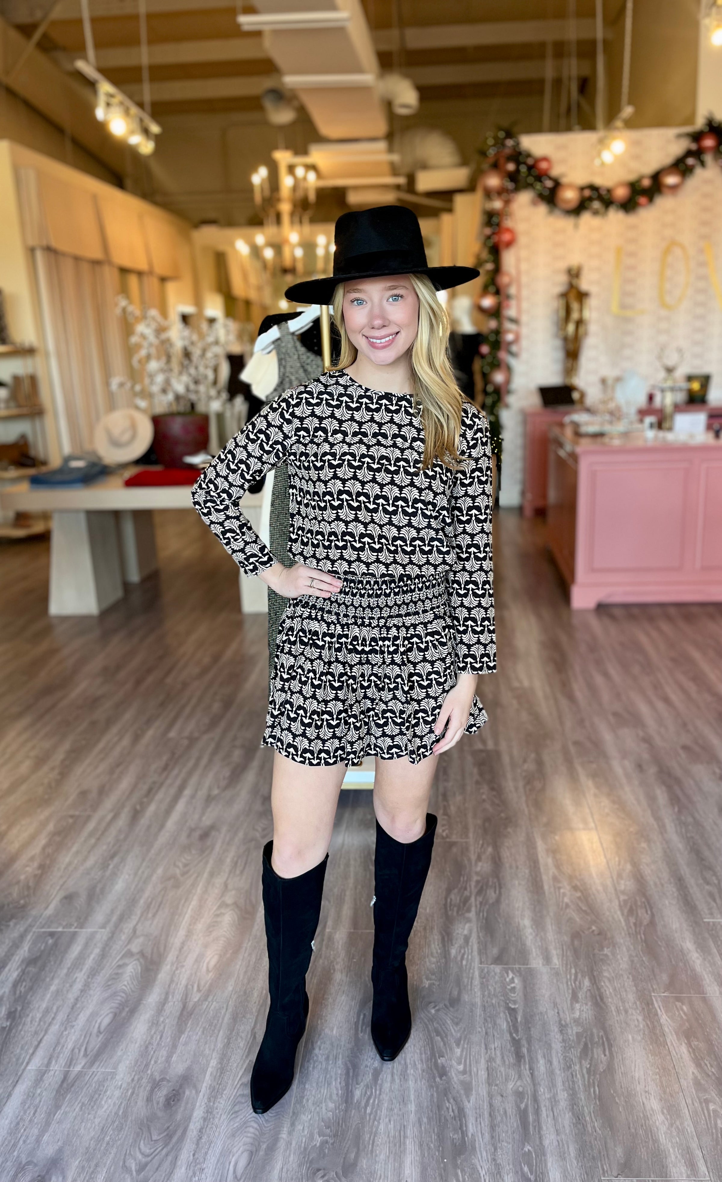 LA8024 Black/Tan Multi Elastic Waist Mini Dress