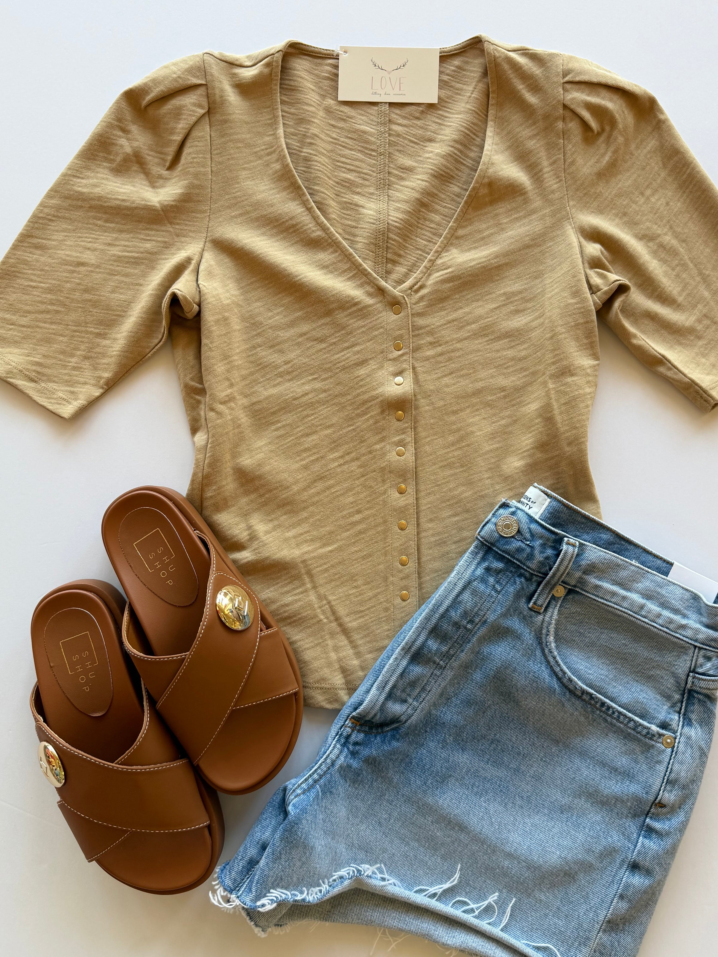 NA1137 Toffee Button Up Blouse