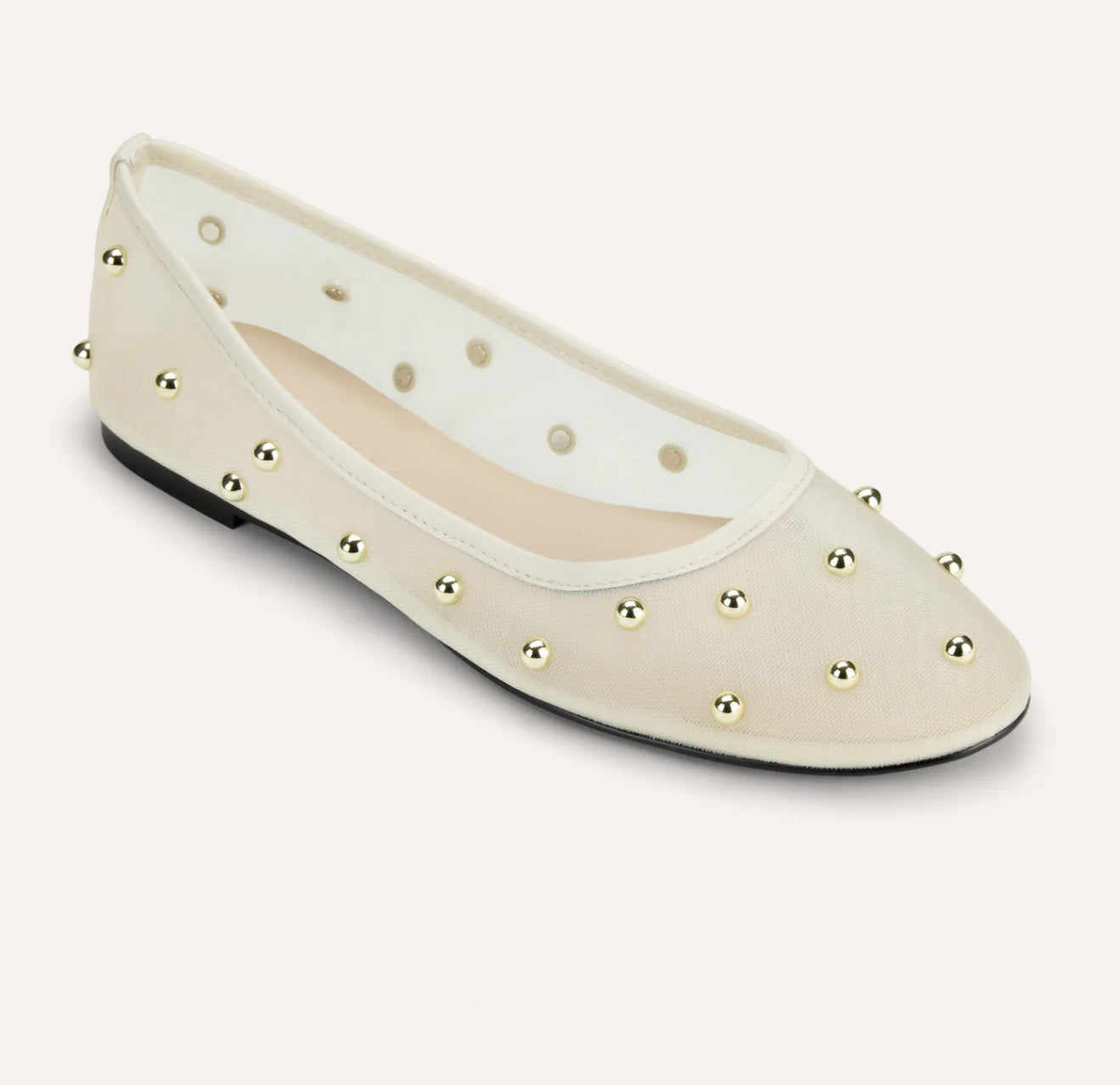 YS Cream Mesh Ballet Flat w/ Studs